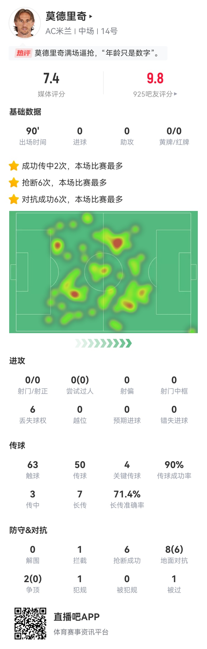 莫德里奇vs佛罗伦萨数据↓
