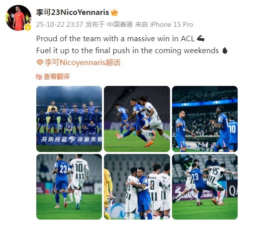 10月23日讯 亚冠精英第3轮赛事 ,申花主场作战 2-0击败首尔FC,取得新赛季亚冠首胜。赛后,免费欧洲杯直播李可在社媒庆祝了这场获胜 。