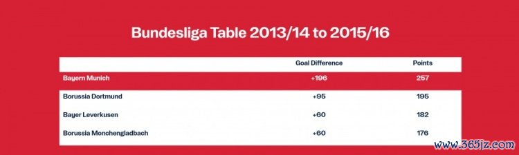 瓜迪奥拉执教拜仁期间的执教场次、胜率,以及他在13/14赛季至15/16赛季率领拜仁在德甲取得的净胜球数与积分